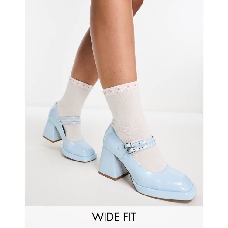 ASOS DESIGN Wide Fit Sully platform mary jane mid shoes in baby blue Very well made.